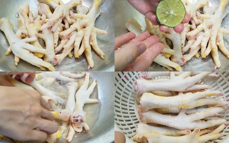 Cuối cùng, rửa lại chân gà nhiều lần với nước sạch cho đến khi hết nhớt và để vào rổ cho ráo nước. Bước sơ chế này giúp chân gà sạch sẽ, loại bỏ vi khuẩn và mùi tanh, sẵn sàng cho công đoạn chế biến tiếp theo của bạn.