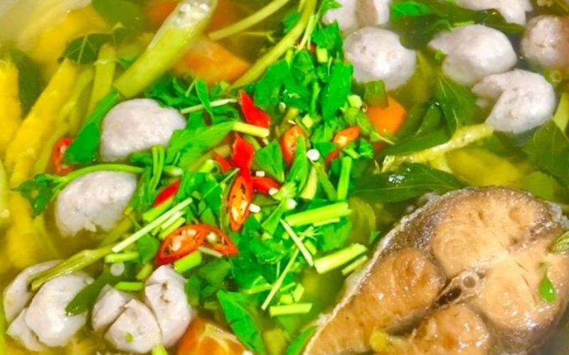 Nước dùng ngọt thanh từ rau củ và bò viên dai ngon sẽ làm hài lòng cả những thực khách khó tính nhất.