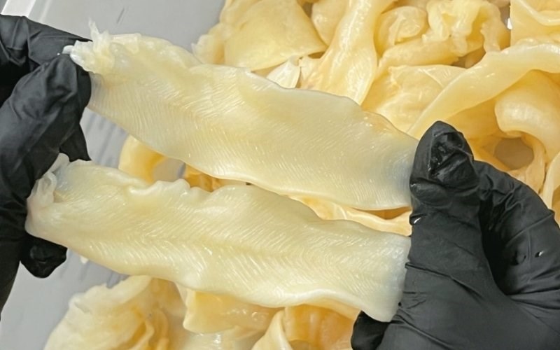 Mẹo nhỏ: Nên kiểm tra kỹ độ dày của miếng bong bóng. Những miếng dày thường sẽ giữ được độ giòn dai tốt hơn sau khi ngâm nở và chế biến.
