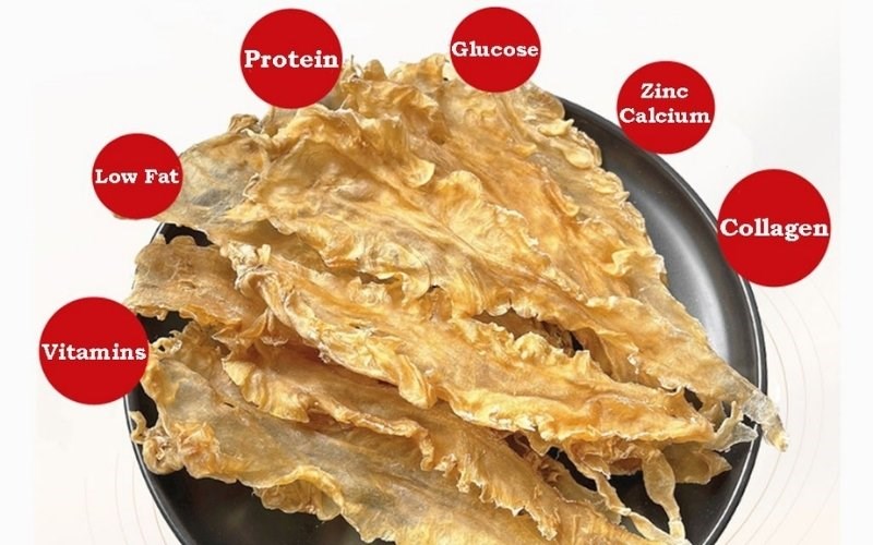 Bong bóng cá là nguồn cung cấp Protein dồi dào và đặc biệt chứa hàm lượng Collagen tự nhiên rất cao. Trong 100g sản phẩm, bạn có thể nhận được nguồn dưỡng chất quý giá giúp hỗ trợ sức khỏe làn da và xương khớp.