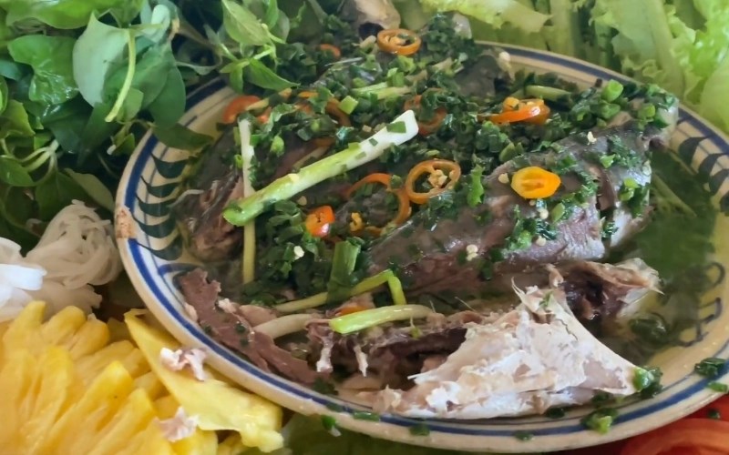 Nếu bạn muốn thưởng thức vị tinh khiết nhất của hải sản thì cá sòng hấp hành gừng là lựa chọn số một. Gừng và hành lá không chỉ giúp khử mùi tanh hiệu quả mà còn làm tăng thêm độ ấm nóng, bổ dưỡng cho món ăn. Món này thường được cuốn cùng bánh tráng, rau sống và chấm với nước mắm chua ngọt hoặc mắm nêm.