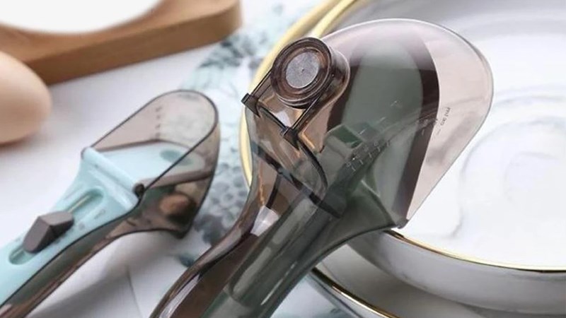 Khi sử dụng muỗng đong: Giữ cân bằng chiếc muỗng, sau đó đổ chất lỏng vào đến khi chạm đến vành trên của muỗng.