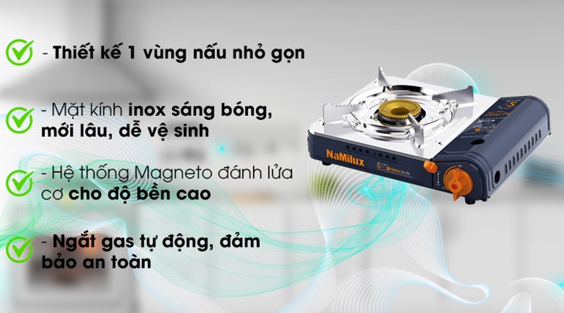 Đúng như tên gọi của nó "mini", với đặc điểm này, bạn có thể tiện đem theo bếp khi đi du lịch, tiệc ngoài trời để nấu nướng thoải mái.