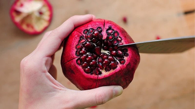 Cách tách hạt lựu cũng rất đơn giản, bạn chỉ cần dùng dao cắt bỏ phần đầu, sau đó khứa dọc theo các đường rãnh là có thể lấy được phần hạt bên trong ra một cách dễ dàng.