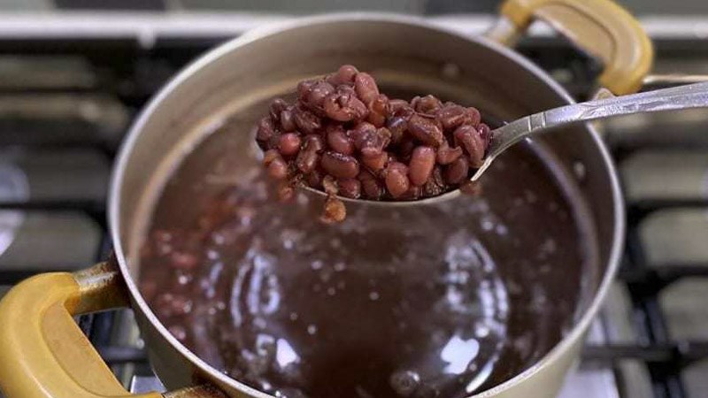 Đặt nồi đậu lên bếp, không đậy nắp nồi và đun ở mức lửa nhỏ cho đến khi nước trong nồi bắt đầu sôi. Khi nước sôi và xuất hiện nhiều bong bóng khí nổi lên, các bạn dùng nắp đậy lại và nấu cho đến khi nước trong nồi sôi sùng sục.