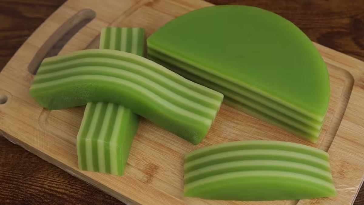 Bánh da lợn nước cốt dừa đạt chuẩn có các lớp màu xanh và vàng xen kẽ đều đặn, đẹp mắt. Bánh có độ dẻo dai, mềm mịn, thơm nồng mùi lá dứa đặc trưng và vị béo ngậy của nước cốt dừa hòa quyện cùng đậu xanh bùi bùi.