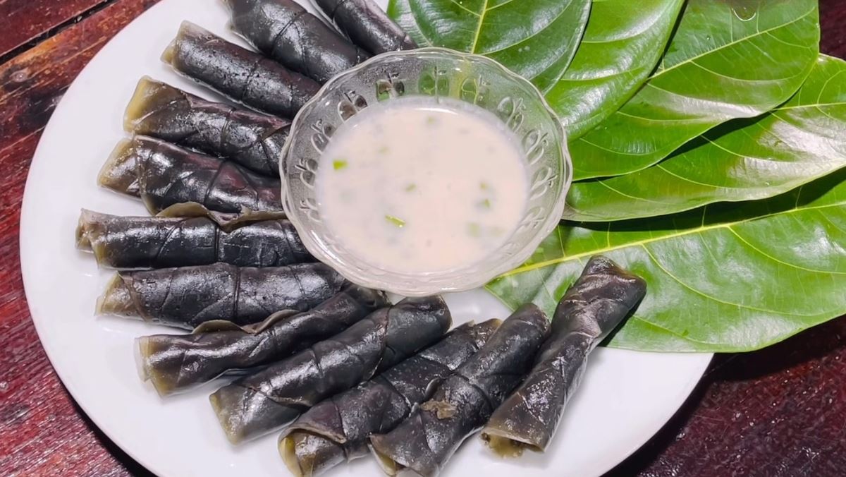 Khi bánh chuyển màu đen và phần bột trở nên trong là bánh đã chín. Lấy bánh ra, để nguội hoàn toàn trước khi gỡ khỏi lá.