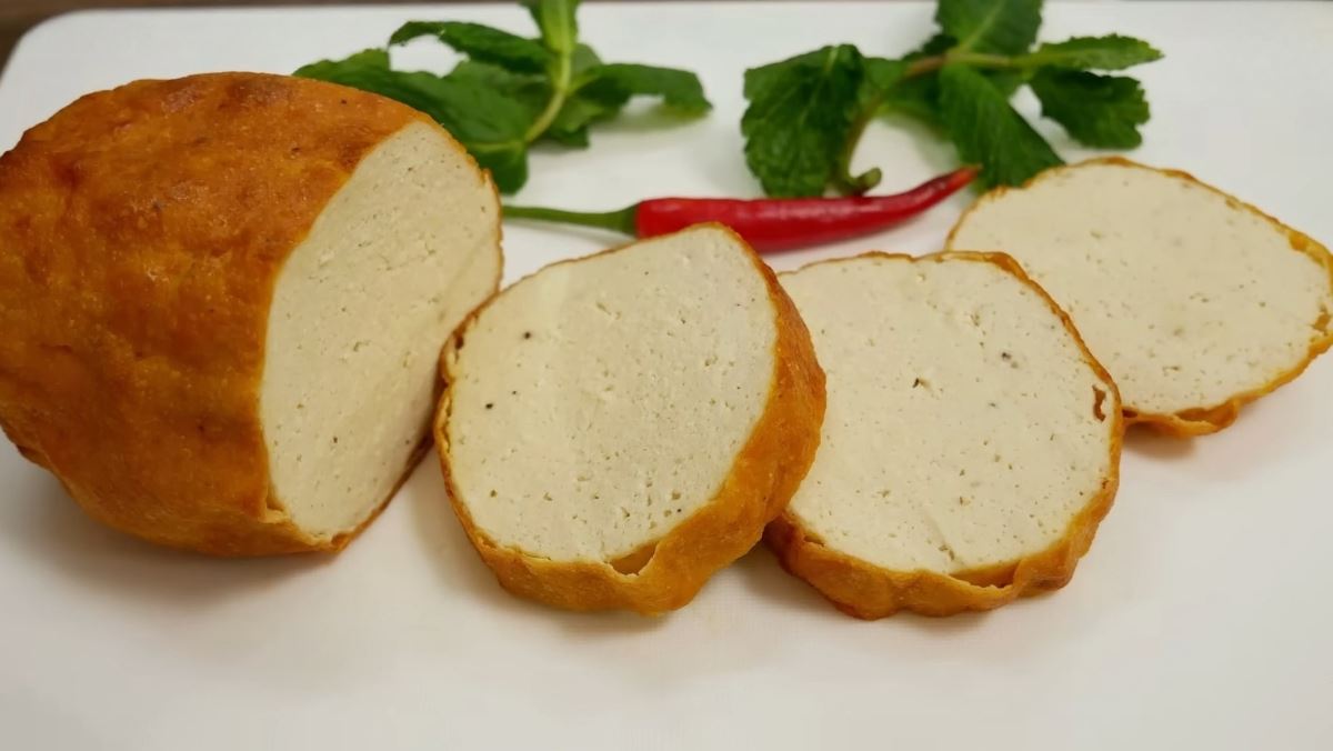 Khi cắt lát, miếng chả dai mềm, đậm đà hương vị, vô cùng hấp dẫn. Bạn có thể dùng món chả chiên chay này ăn kèm với bún, bánh mì hoặc cơm trắng đều rất tuyệt vời. Một món chay ngon miệng, bổ dưỡng cho cả gia đình!
