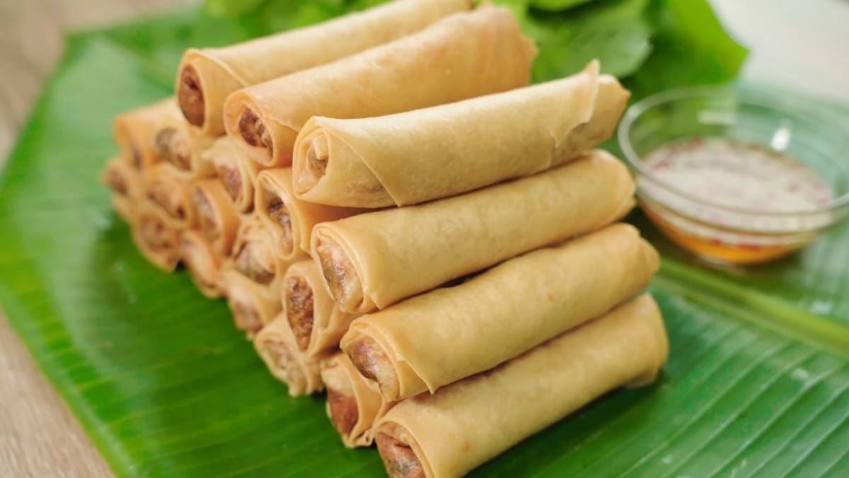 Những cuốn chả giò miền Nam vàng ươm, lớp vỏ giòn tan và không bị vỡ nát trông cực kỳ bắt mắt. Nhân bên trong đậm đà, thơm bùi vị khoai môn và ngọt tự nhiên từ tôm thịt, ăn kèm với nước mắm chua ngọt, đồ chua và rau sống sẽ tạo nên hương vị khó cưỡng.