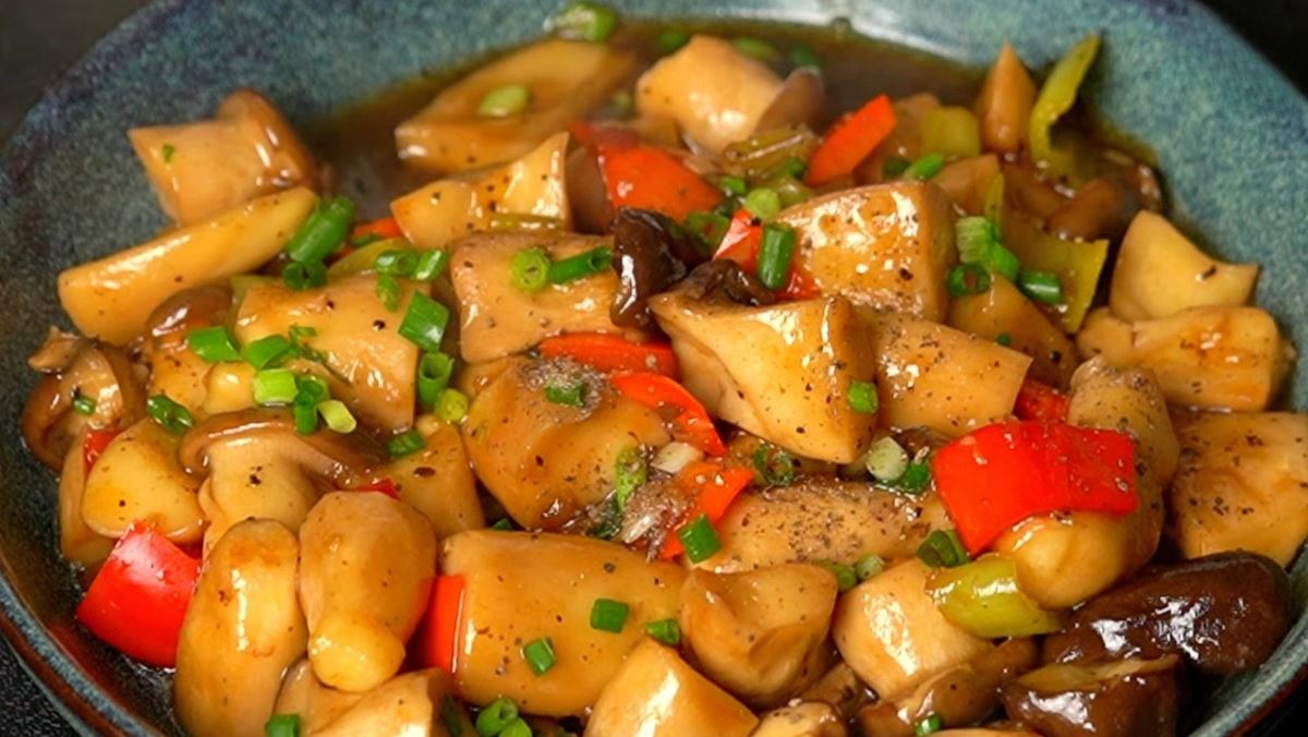 Khi ăn, bạn sẽ cảm nhận được nấm đùi gà dai sần sật, ngọt thanh hòa quyện cùng nước sốt mặn mặn, ngọt ngọt và vị cay nồng nàn. Món này ăn cùng cơm trắng nóng hổi là "cực phẩm" cho bữa ăn gia đình, đặc biệt là các tín đồ món chay!
