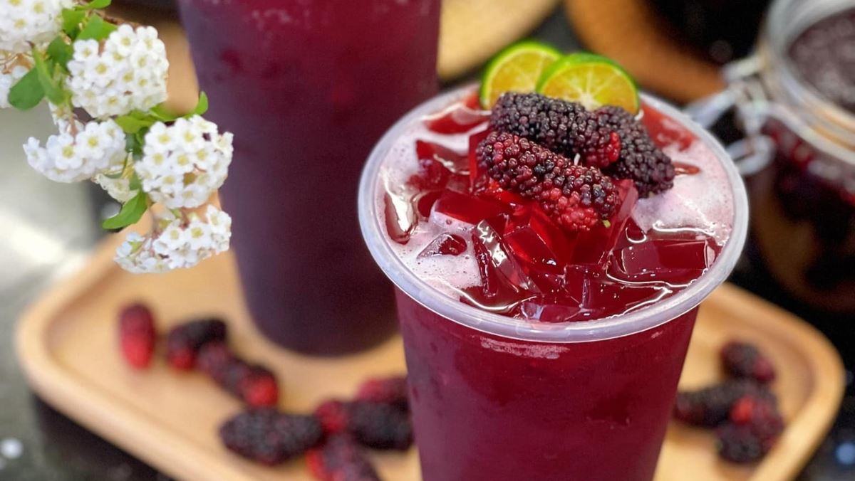 Nước dâu tằm sau khi hoàn thành có màu đỏ tím cực kỳ bắt mắt. Khi uống, bạn sẽ cảm nhận được vị chua chua ngọt ngọt thanh mát, hòa quyện cùng hương thơm đặc trưng của dâu chín, rất phù hợp để giải nhiệt trong những ngày nắng nóng.