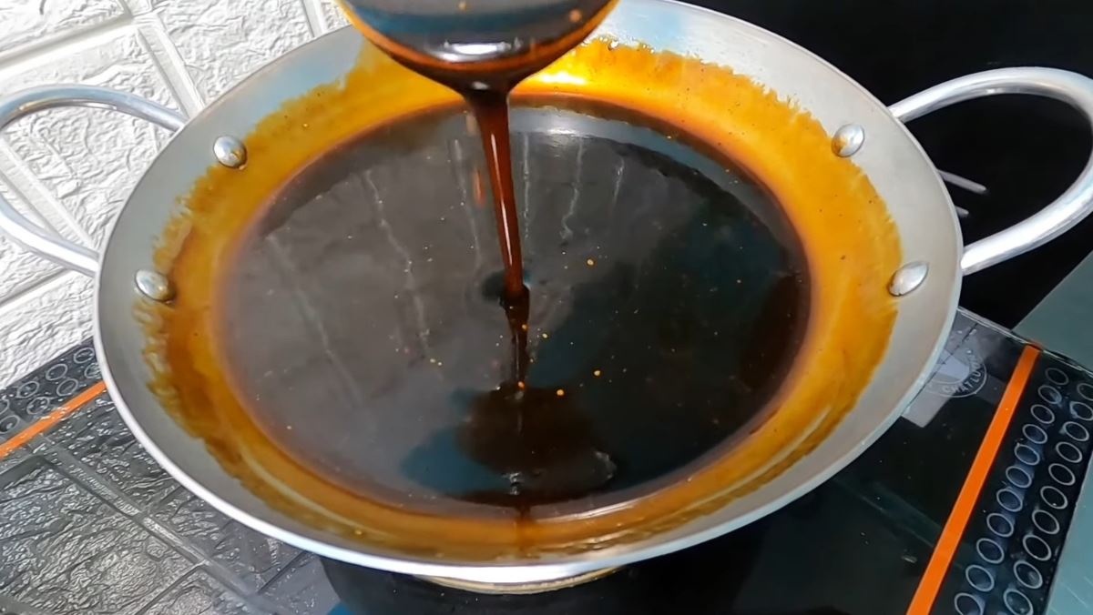 Khi thấy nước sốt bắt đầu sôi bùng lên và nổi bong bóng lớn, bạn tiếp tục đun thêm khoảng 1-2 phút. Đến khi hỗn hợp có độ sánh mịn và bóng mượt đặc trưng thì tắt bếp.