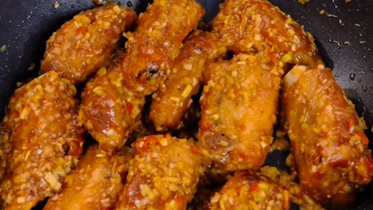 Sau đó, rưới toàn bộ phần nước sốt đã pha vào chảo, đun cho đến khi nước sốt bắt đầu sôi và sệt lại. Cuối cùng, cho phần sườn đã chiên vàng vào đảo đều tay để nước sốt sả ớt bám đều và thấm đẫm vào từng miếng sườn là hoàn tất.