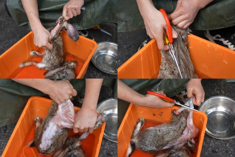 Sau đó, bạn sẽ dùng dao cắt bỏ phần đuôi, hậu môn và cơ quan sinh dục để loại bỏ mùi khó chịu. Cuối cùng, rửa sạch lại phần thịt thỏ bằng nước để chuẩn bị cho công đoạn chế biến.