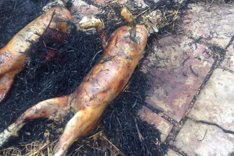 Để thịt thỏ không hôi thì thui da chính là một trong những cách hữu hiệu nhất. Theo đó, sau khi làm sạch lông và rửa sơ cho thỏ sạch sẽ thì bạn sẽ lót một ít rơm bao quanh lấy con thỏ rồi nhóm lửa để thui cháy xém lớp da bên ngoài.
