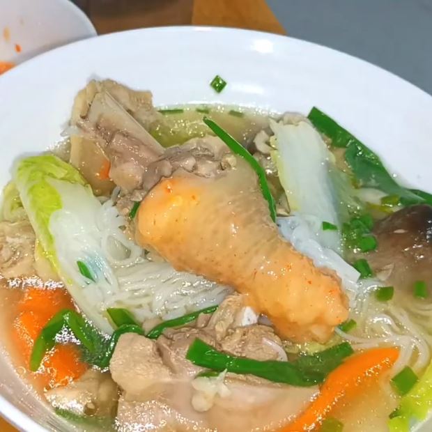 Cuối cùng, cho cải cúc (tần ô) vào, đun sôi trong 1 phút. Nêm nếm lại cho vừa ăn, rắc hành boa rô lên rồi tắt bếp.