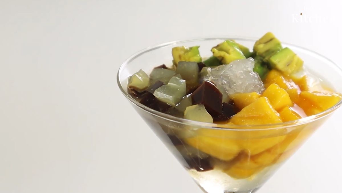 Khi ăn, bạn dùng thìa trộn nhẹ để các loại trái cây thấm đều nước đường mát lạnh. Ly chè cocktail đầy màu sắc, nước đường ngọt thanh hòa quyện cùng vị béo của bơ, vị chua ngọt của xoài và sự dai giòn của các loại thạch sẽ làm bạn mê mẩn.