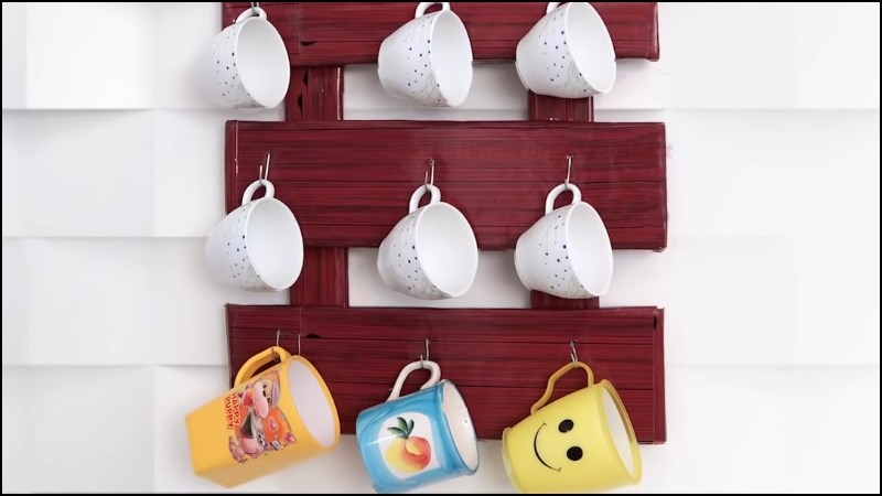 Bạn có thể mua các móc treo hoặc tự thiết kế móc treo ngay tại nhà rồi để treo các loại ly, tách có tay cầm lên một cách dễ dàng vừa giúp tiết kiệm không gian lại còn tăng thêm tính thẩm mĩ cho gian bếp.