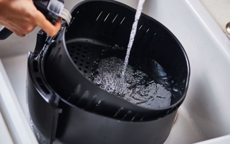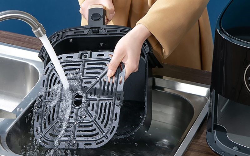 Mách nhỏ: Tránh sử dụng các chất tẩy rửa mạnh hoặc dụng cụ cọ rửa có bề mặt cứng, vì chúng có thể làm trầy xước bề mặt khay chiên.
