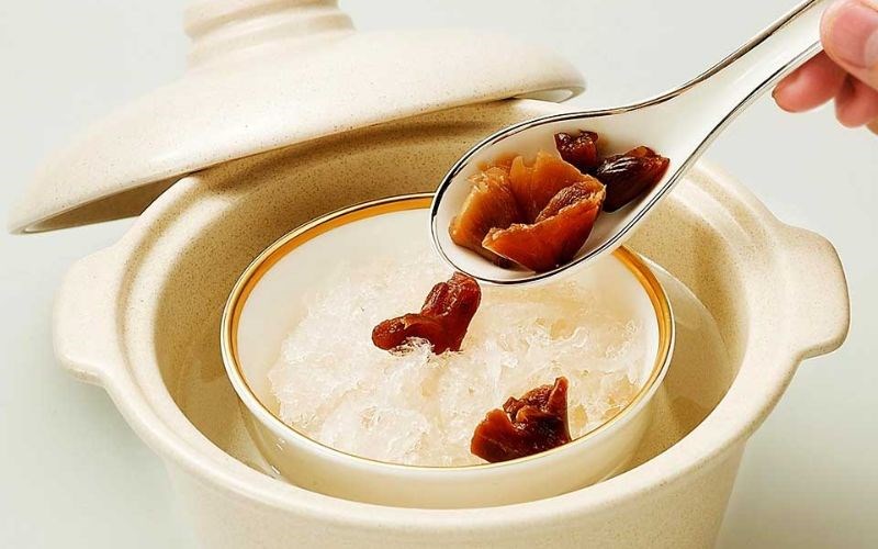 Chỉ khi yến đã đạt độ nở chuẩn, bạn mới thêm đường phèn, gừng hoặc táo đỏ vào khoảng 5 phút cuối trước khi tắt bếp; điều này không chỉ giúp món yến đạt độ mềm mướt hoàn hảo mà còn giữ trọn vẹn hương thơm đặc trưng của các nguyên liệu đi kèm.