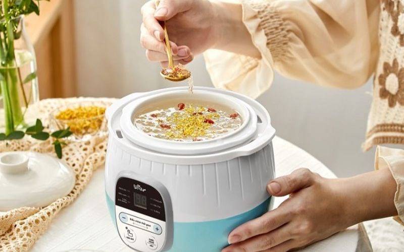 Nồi này hoạt động theo nguyên lý nấu chậm (slow cooker), giúp sợi yến nở từ từ: