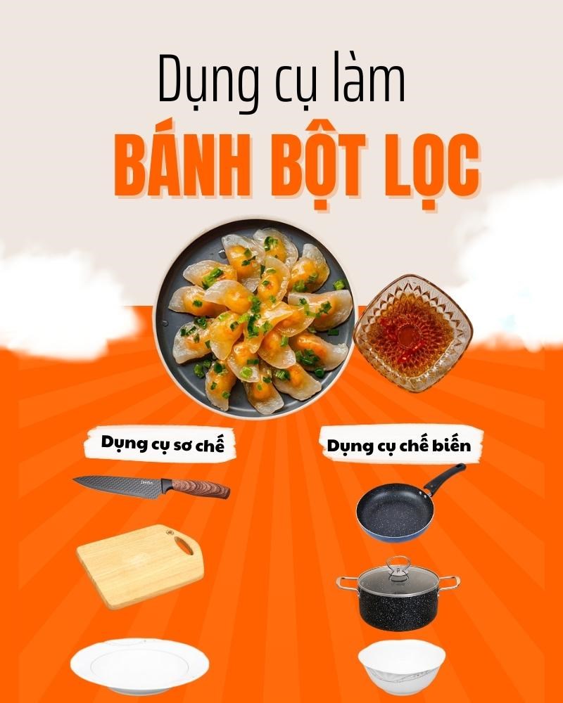 Với món bánh bột lọc, bạn cần phải cắt các nguyên liệu như tôm, rau, thịt,... nên bạn cần phải chuẩn bị dao, đặc biệt là dao bén.