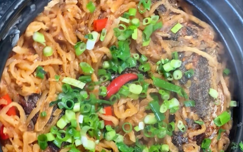 Củ cải khô khi đem kho cùng cá không chỉ giúp khử sạch mùi tanh mà còn tiết ra vị ngọt tự nhiên làm nước kho thêm thanh thoát. Từng thớ cá chắc thịt thấm đẫm gia vị mặn mà, kết hợp với những sợi củ cải giòn sần sật tạo nên trải nghiệm vị giác đa dạng.