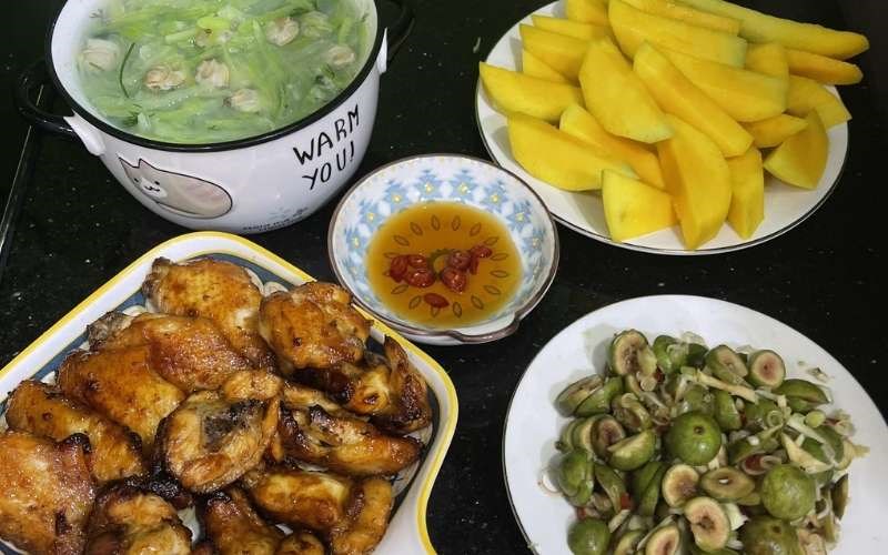 Khép lại bữa cơm một cách sảng khoái là đĩa xoài chín vàng ươm, tỏa hương thơm nồng nàn và mang vị ngọt lịm đặc trưng của mùa trái chín. Những miếng xoài mát lạnh không chỉ giúp làm sạch vị giác sau các món mặn, chua, cay mà còn mang đến cảm giác sảng khoái, trọn vẹn, đánh dấu một kết thúc ngọt ngào cho buổi sum họp gia đình.