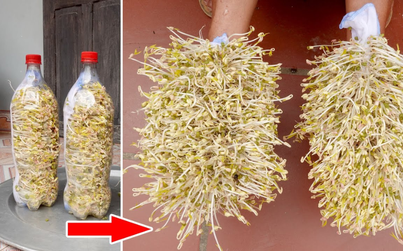 Bỏ hạt đỗ xanh đã ngâm vào trong chai. Đặt chai vào chỗ tối, không có gió hoặc dùng vải đen bọc lại. Mỗi ngày, tưới nước cho hạt đỗ để giữ ẩm. Khoảng 3 - 4 ngày sau là có thể thu hoạch giá.
