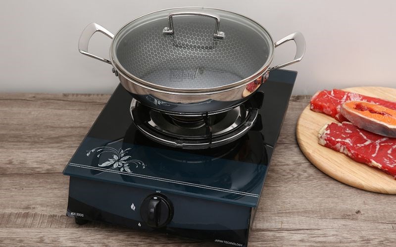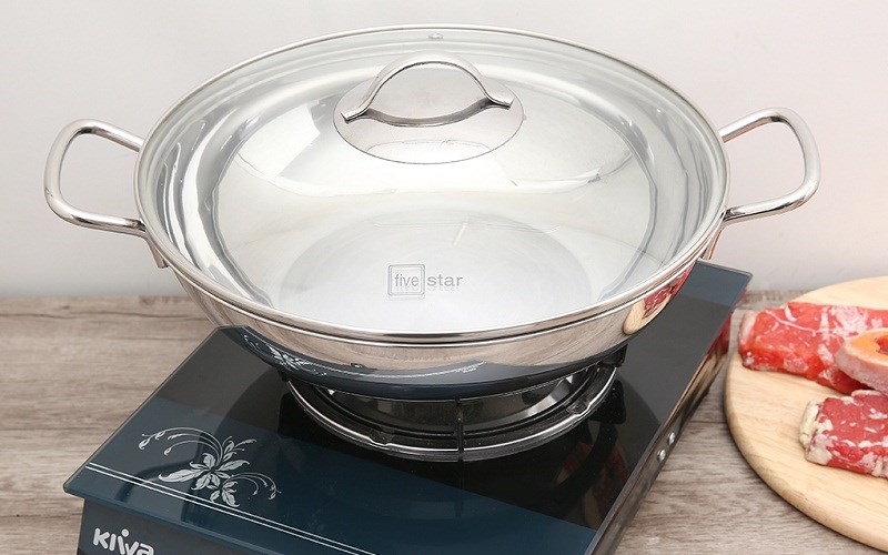 Bên cạnh đó, thành và đáy chảo được làm từ chất liệu: inox 304 - nhôm - inox 430 cùng độ dày lòng chảo 2.2 mm giúp truyền nhiệt nhanh, giữ nhiệt tốt, hạn chế móp méo do va chạm. Sản phẩm còn được trang bị nắp kính trong suốt giúp người dùng dễ dàng quan sát thực phẩm khi nấu.