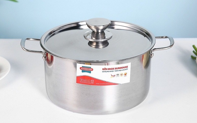 | Nồi inox 24 cm Sunhouse SHG120-24 | Bếp gas, dùng được bếp từ, bếp hồng ngoại | Inox 430 | Nắp inox | 24 x 13 x 34 cm |