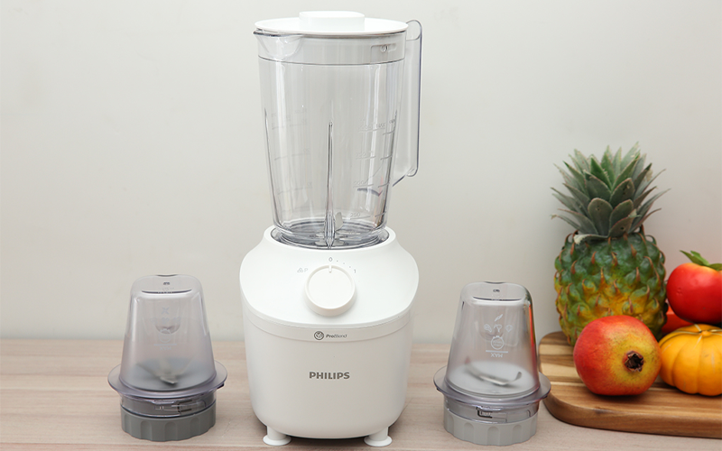 Máy xay sinh tố đa năng Philips HR2041/30 - 3 cối là sản phẩm của thương hiệu Philips - Hà Lan, được sản xuất tại Trung Quốc. Máy có màu trắng thanh lịch, tinh tế với thiết kế sang trọng, đẹp mắt phù hợp với không gian bếp nhà bạn. Máy hoạt động với công suất 450W kết hợp cùng 2 lưỡi dao 4 cánh và 1 lưỡi dao 2 cánh bằng thép không gỉ giúp thức ăn được xay nhuyễn nhanh chóng.
