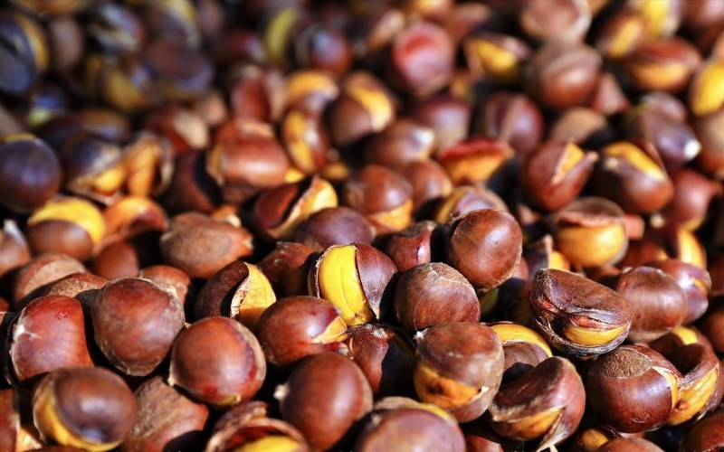 Hạt dẻ Trùng Khánh là món ăn vặt nổi tiếng, đặc biệt vào mùa thu đông, với những hạt dẻ rang chín bùi, thơm lừng. Hạt dẻ có vỏ ngoài bóng bẩy, bên trong ruột vàng ươm, ngọt bùi và mềm mịn.