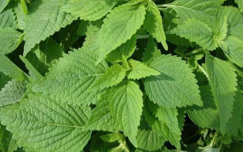 Rau tía tô có lá màu xanh tím đặc trưng, mùi thơm nồng ấm và vị hơi cay nhẹ. Đây là loại rau thơm quen thuộc, thường được dùng để ăn kèm với các món bún, phở, nem nướng, cháo hoặc các món gỏi. Vị cay ấm của tía tô giúp tăng thêm hương vị cho món ăn và kích thích vị giác.