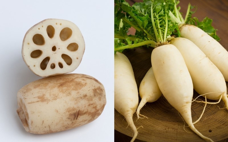 Củ sen giòn sần sật, củ cải trắng ngọt nước là bộ đôi hoàn hảo để làm nước dùng lẩu thêm thanh ngọt tự nhiên. Chúng thường được cho vào hầm cùng đuôi bò, gừng và sả để khử mùi hiệu quả.