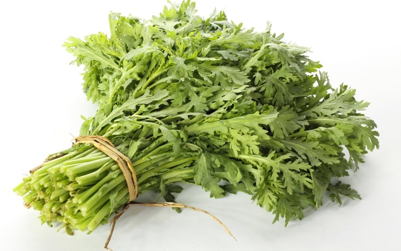Rau tần ô (cải cúc) có mùi thơm rất đặc trưng và thân giòn, là một lựa chọn tuyệt vời cho lẩu đuôi bò. Tinh dầu trong rau giúp tiêu thực và làm ấm bụng.