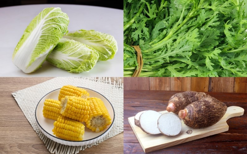 Ngô ngọt (bắp mỹ) cắt khúc nên được thả vào từ đầu để nước lẩu thêm ngọt thanh. Khoai môn cắt miếng vừa ăn sẽ giúp nước lẩu hơi sánh và bùi, tạo cảm giác no bụng và ấm áp.