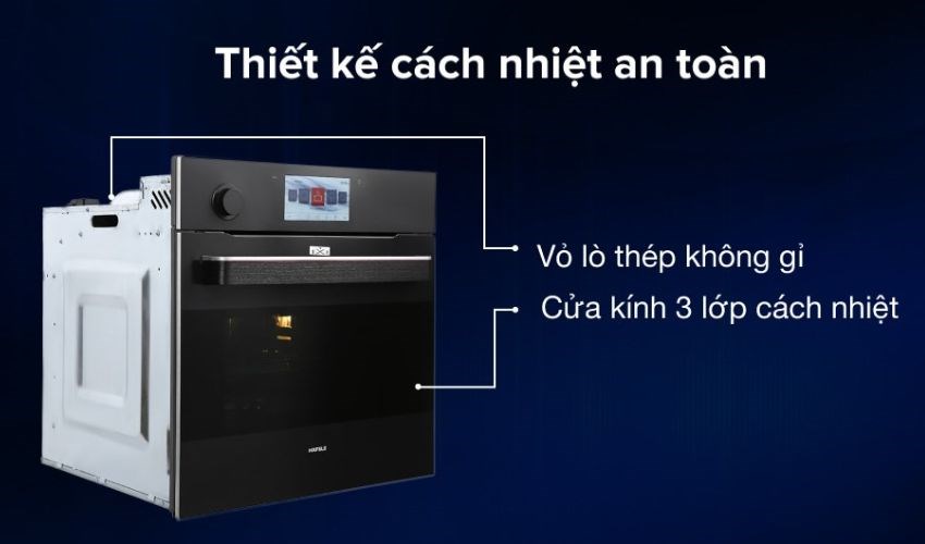 Cửa của khoang lò làm bằng chất liệu cường lực trong suốt cách nhiệt tốt, dễ dàng quan sát khoang nướng hấp. Lò nướng có rãnh đặt khay nướng hấp khoa học, các chi tiết được phủ lớp men chịu nhiệt đẹp mắt, chắc chắn.