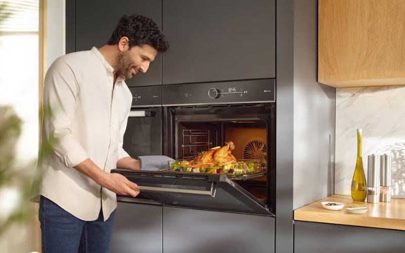 Quạt đối lưu tạo ra dòng khí nóng, đảm bảo nhiệt được phân bổ đều và giúp thực phẩm chín nhanh chóng.