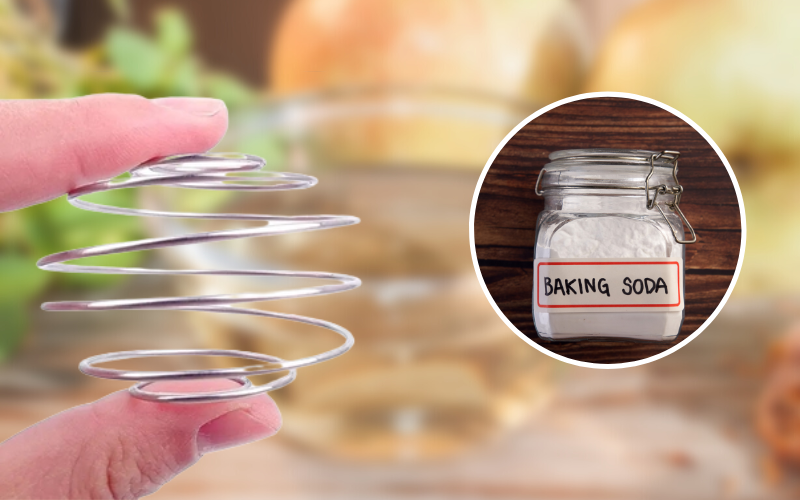 Để loại bỏ các vết bẩn và mùi hôi khó chịu trên lò xo bình lắc, bạn có thể sử dụng baking soda. Baking soda có khả năng làm trắng, khử mùi và làm sạch hiệu quả. Bạn cần chuẩn bị nước ấm, một muỗng canh baking soda và lò xo bình lắc.
