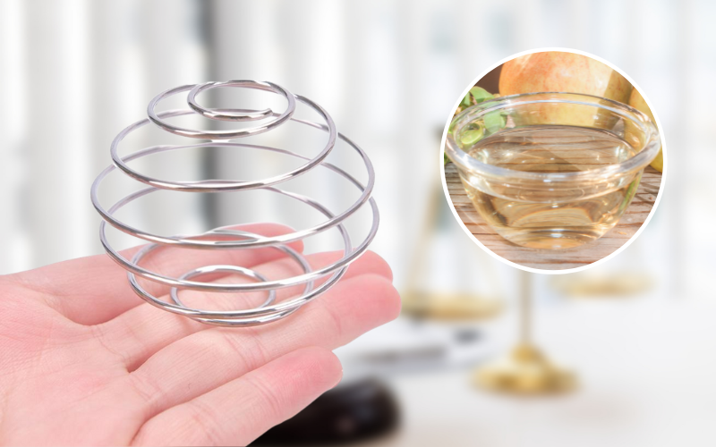 Một cách khác để làm sạch bình lắc và lò xo là dùng giấm trắng. Bạn pha giấm trắng với nước theo tỉ lệ 1:1, rồi cho vào bình. Bạn đặt lò xo vào bình và lắc nhẹ trong 1 phút, rồi để yên trong 10 phút. Giấm trắng có tác dụng khử mùi và tiêu diệt vi khuẩn cho bình và lò xo. Cuối cùng, bạn vớt lò xo ra và rửa bình và lò xo với nước sạch và lau khô.