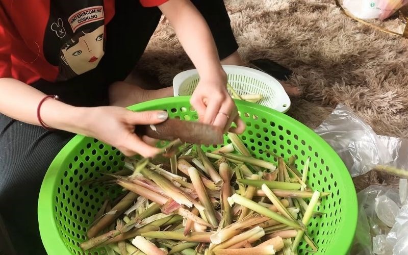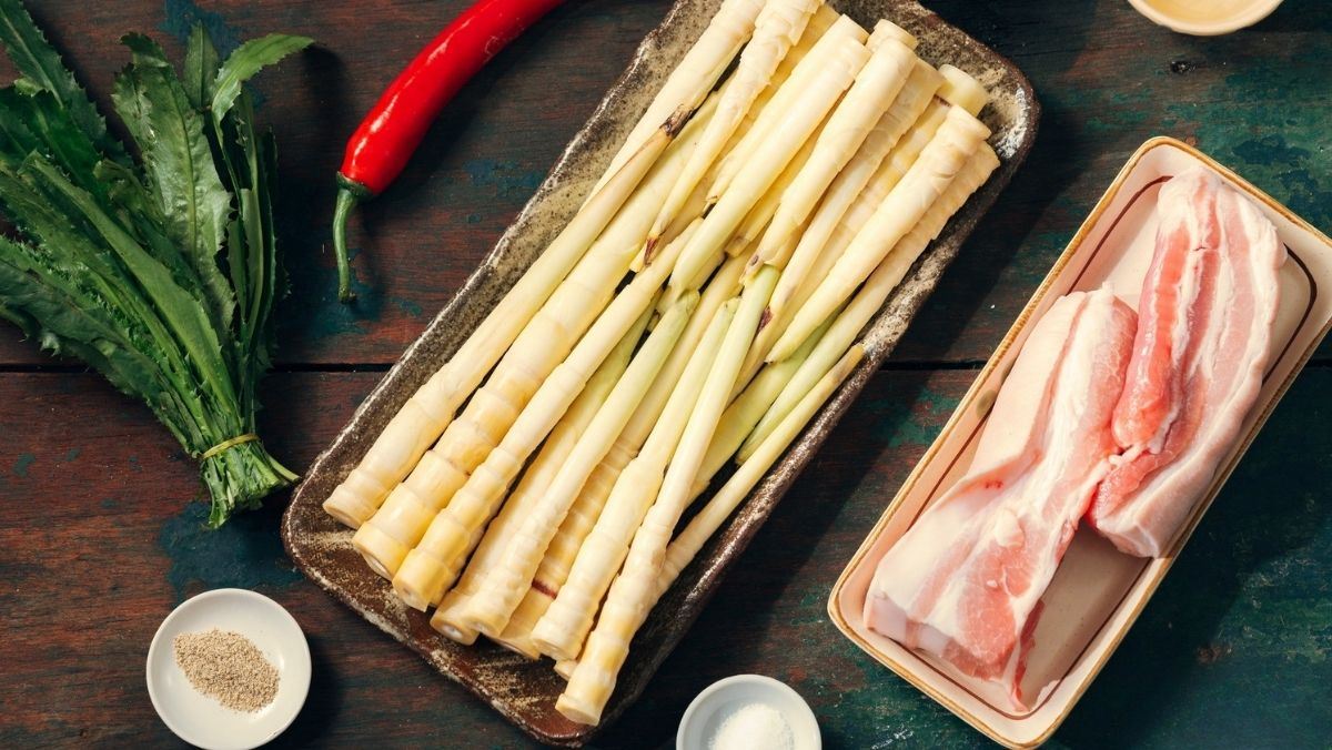 Sơ chế măng sặt khá đơn giản. Đầu tiên, bạn bóc bỏ lớp vỏ bên ngoài cho đến khi lộ ra phần ruột măng trắng ngà.