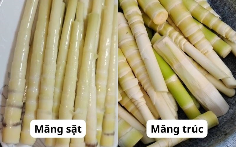 Nhiều người thường nhầm lẫn măng sặt với măng trúc vì hình dáng khá tương đồng. Tuy nhiên, măng sặt có thân nhỏ hơn, thon hơn và vỏ mỏng hơn măng trúc đáng kể.
