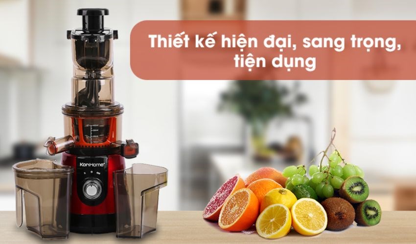Máy ép trái cây Korihome là một trong những sản phẩm nổi bật của từ thương hiệu. Sản phẩm có thiết kế đơn giản, sang trọng, cho khả năng ép trái cây hiệu quả, tiết kiệm thời gian, công sức tối đa cho người nội trợ.