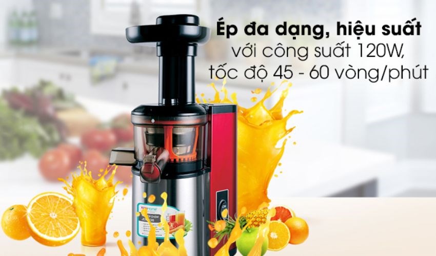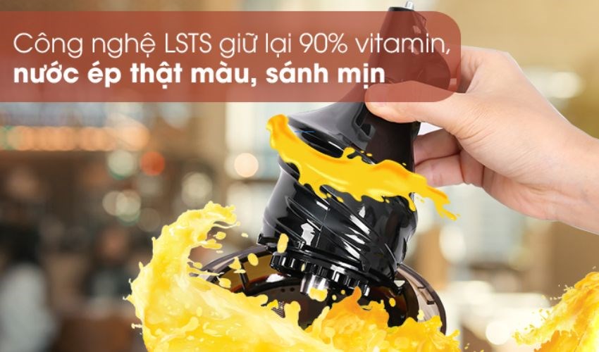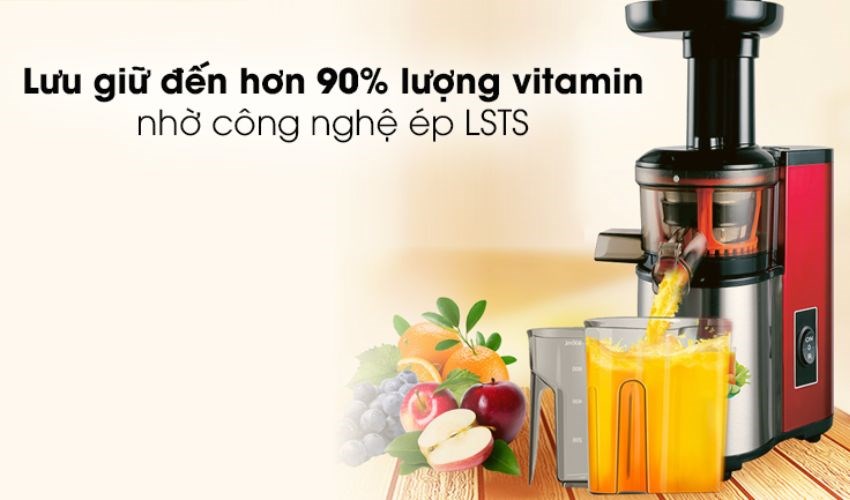Thiết bị sở hữu khả năng ép tăng gấp 6 lần lượng vitamin, lưu giữ đến 90% vitamin, màu sắc, hương vị nguyên liệu nhờ có công nghệ ép chậm hiện đại. Ngoài ra, các bộ phận của máy ép trái cây tháo rời dễ dàng, tiện vệ sinh và cất giữ.