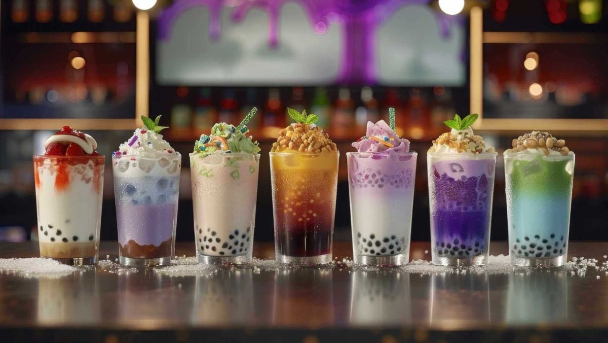 Những viên trân châu dai dai, pudding béo ngậy hay thạch trái cây giòn sần sật không chỉ tăng thêm hương vị mà còn là điểm nhấn thú vị khi thưởng thức.