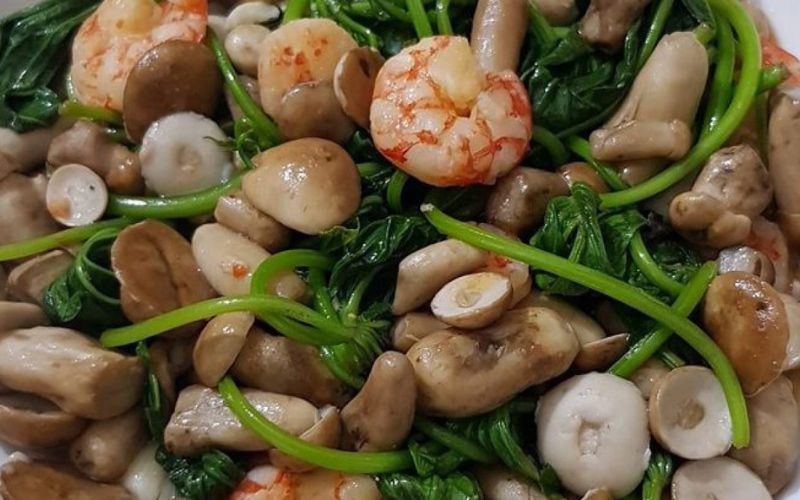 Không biết từ bao giờ mà món nấm tràm xào rau lang đã gắn liền với tuổi thơ của nhất nhiều người.