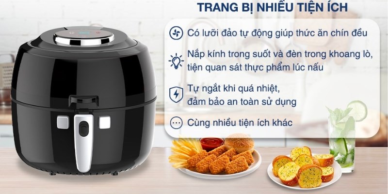Nồi chiên không dầu được trang bị nhiều tính năng đi kèm hỗ trợ người dùng nấu nướng một cách nhanh chóng, dễ dàng và thuận tiện: