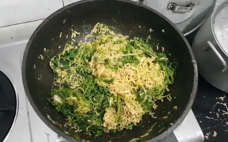 Bạn có thể ăn rau bò khai xào mì tôm với cơm hoặc dùng món này để lấp đầy chiếc bụng đang đói cồn cào chỉ với vài thao tác nấu nướng đơn giản.