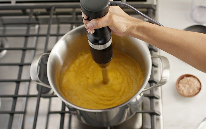 Ngoài ra, bạn có thể xay thực phẩm trực tiếp trong nồi, tô hoặc các vật dụng chứa khác mà không cần phải chuyển thực phẩm ra ngoài. Điều này không chỉ tiết kiệm thời gian mà còn giảm thiểu sự lộn xộn khi chế biến món ăn.